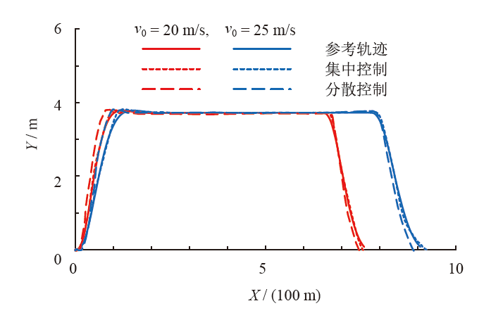 研究了自动驾驶汽车在高速公路上超车过程中的轨迹规划和跟踪控制。基于纵向位移与时间(s-t)图,对超车过程进行建模和数字仿真分析,并应用多项式来规划车辆横纵向运动。采用集中式模型预测控制器,综合控制车辆横纵向的运动,以实现超车过程的轨迹跟踪。结果表明:相较于分散式控制方法,利用集中式控制方法下的车辆侧向加速度的整体波动减小19.0%,横摆角速度的整体波动减小11.6%。因而,集中式控制方法下的横向运动偏差更小,纵向加速过程更加平滑、稳定,符合高速公路超车过程安全平稳性的要求。