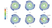 A structure scheme of array scroll was proposed based on asymmetric single arc modification to meet the requirements of the compact and large-displacement design of scroll Hydrogen Recirculation-Pump (HRP) in fuel cell hydrogen supply system. The parametric design and modeling were carried out for the HRP with double scrolls and triple scrolls. Two-dimensional Computational Fluid Dynamics (CFD) overset-mesh method was used to analyze the effects of the rotating speed and pressure rise on the performances of double-scrolls HRP, and the performance differences between the double scrolls HRP and the triple-scrolls HRP were compared. The results show that the pressure and temperature uniformity of triple-scrolls HRP is better. The performance of the double-scrolls HRP and the triple-scrolls HRP are greatly improved with the increasing rotating speeds or the decreasing pressure rising, the efficiency continues to drop by about 30% and 40% respectively when the pressure rises increase from 20 kPa to 100 kPa at design speed, and the tangential leakage and hydrogen backflow have a great impact on the performances of HRP. Under the requirements of design displacement and volume, the performances of the double scrolls HRP are better than that of the triple scrolls HRP, and the maximum efficiency difference is about 19%.