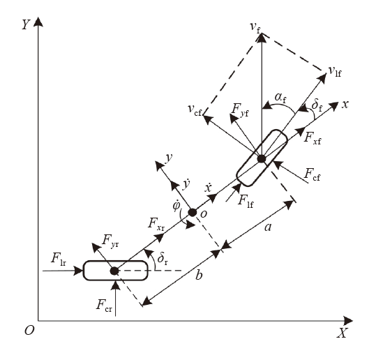 | Fcf、Fcr | 前后轮横向力 (沿轮胎横向) |