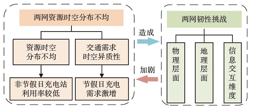 电动汽车作为交通电气化的核心,对减少温室气体排放和提高能源效率起到了积极的作用。显著增长的电动汽车保有量和市场占比对充电基础设施产生了一定的影响,如充电设施不足和电网负荷波动等问题凸显。本文深入梳理了交通网络承载力和电力网络承载力的基本概念、计算方法和评估指标,分析了交通与能源网络两网评估方法与两网融合韧性,并探讨了交通-电力融合系统潜在的挑战与策略;揭示出目前亟待开展的研究领域并指出了未来的研究方向,以期提高充电设施效率,缓解交通拥堵,保障电网稳定运行。