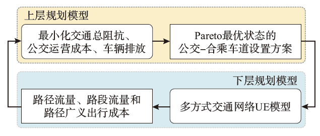 关键词: 交通工程, 双层规划模型, 多目标优化, 公交-合乘车道(bus-HOV lanes), 用户均衡