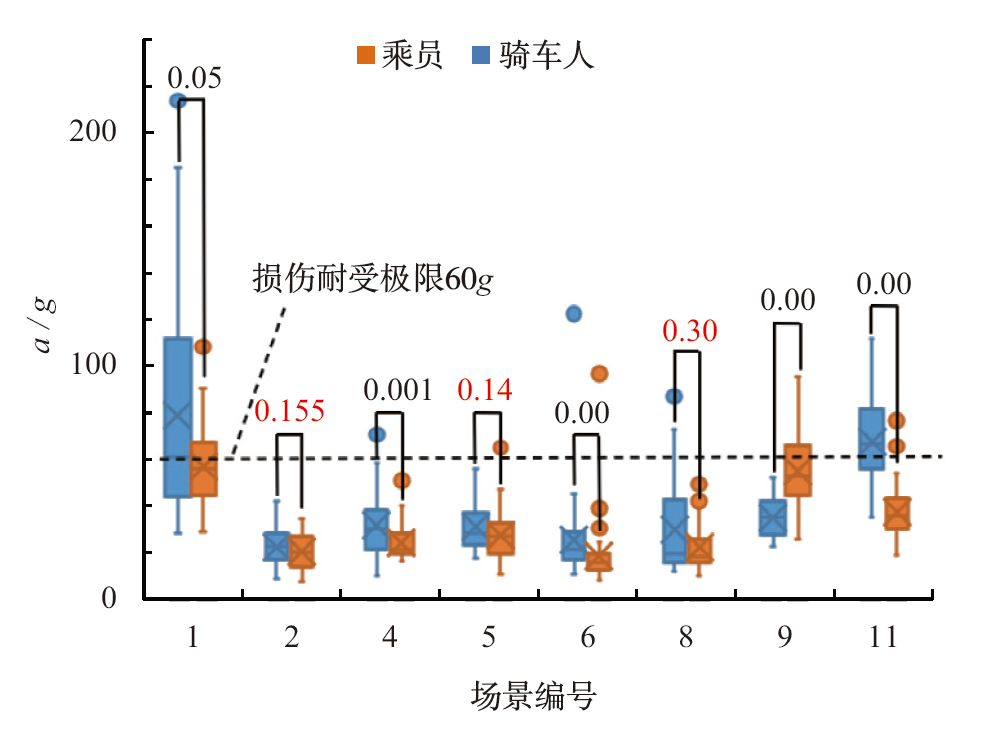 | 场景 | vveh / (km·h-1) | v2w / (km·h-1) | 碰撞部位 |